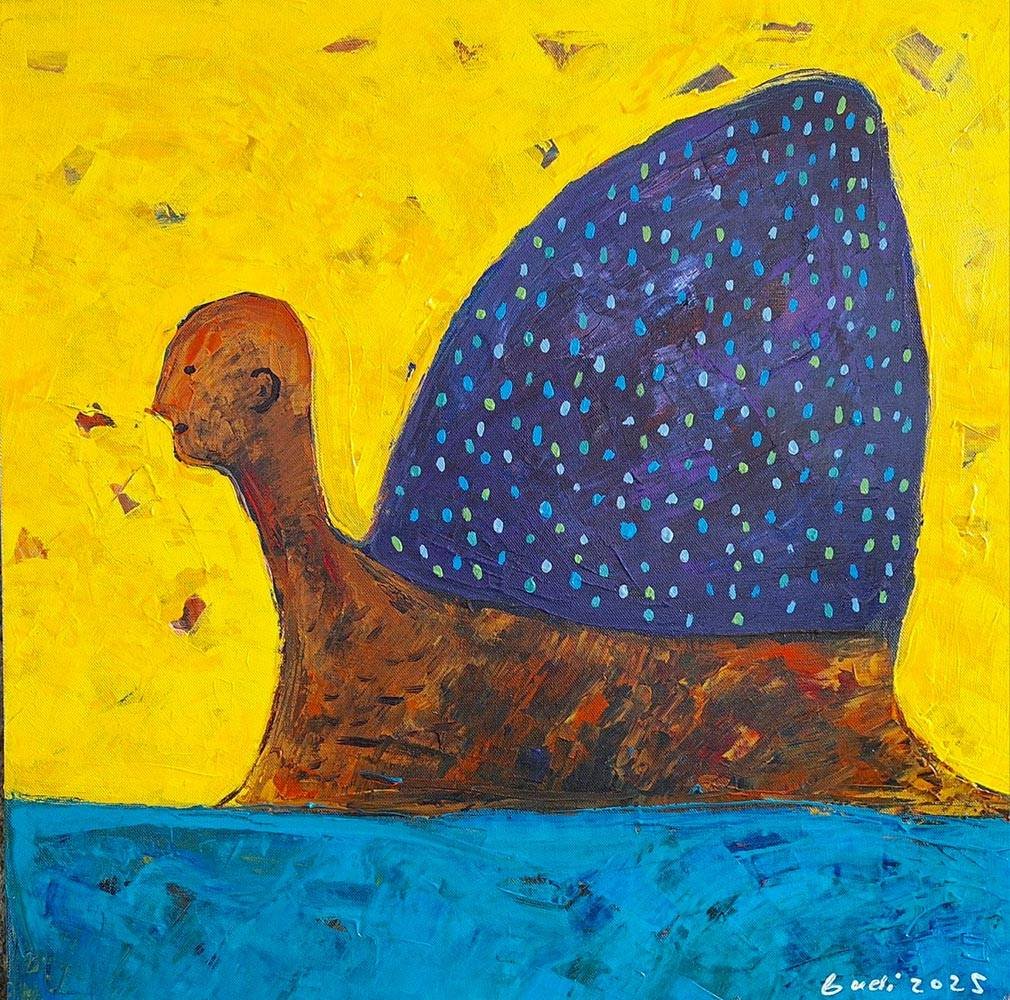 Budi Gugi is an Indonesian painter who lives on the Island of Bali. Budi is a self-described loner, who spends 99% of his time in solitude. His paintings reflect this isolated existence and express the beauty of life, with an equal appreciation of both joy and sorrow. According to Budi,
